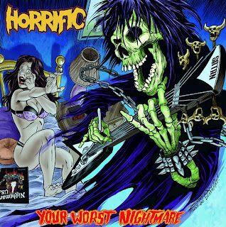 Ascult Your Worst Nightmare de la Horrific, normal! Horrific este proiectul solo al lui Slasher Dave de la Acid Witch şi este o combinaţie irezistibilă de death metal, thrash metal şi 80s heavy metal, presărată cu nişte grind şi doom şi stropită cu o dragoste neţărmuită pentru filmele horror optzeciste. Să fie bine pentru toată lumea. Dacă ar fi să aleg un adjectiv pentru a descrie Your Worst Nightmare, acesta ar fi CATCHY. Întregul album este ca o expoziţie de riff-uri melodice, perindându-se fără încetare unul după altul, procesiune futfantastică întreruptă numai de solo-urile shredduite cu pasiunea unui gagiu care cântă la zbrangă în dormitor. Dacă vreţi neapărat un echivalent muzical, Horrific sună ca şi cum ai fi pus în blender Acid Witch, Frightmare şi Blood Freak. Accentul pus pe atmosfera siropoasă/sângeroasă nu este deloc străină de trupele enumerate. Nicio piesă nu este prea lungă, tehnică sau încărcată - chitaristul Slasher Dave nu urmăreşte să impresioneze prin nivelul său de tehnicitate, ci prin crearea unor cântece groovy care să-ţi rămână în cap mult după ce ai fost înlănţuit în cubicle.